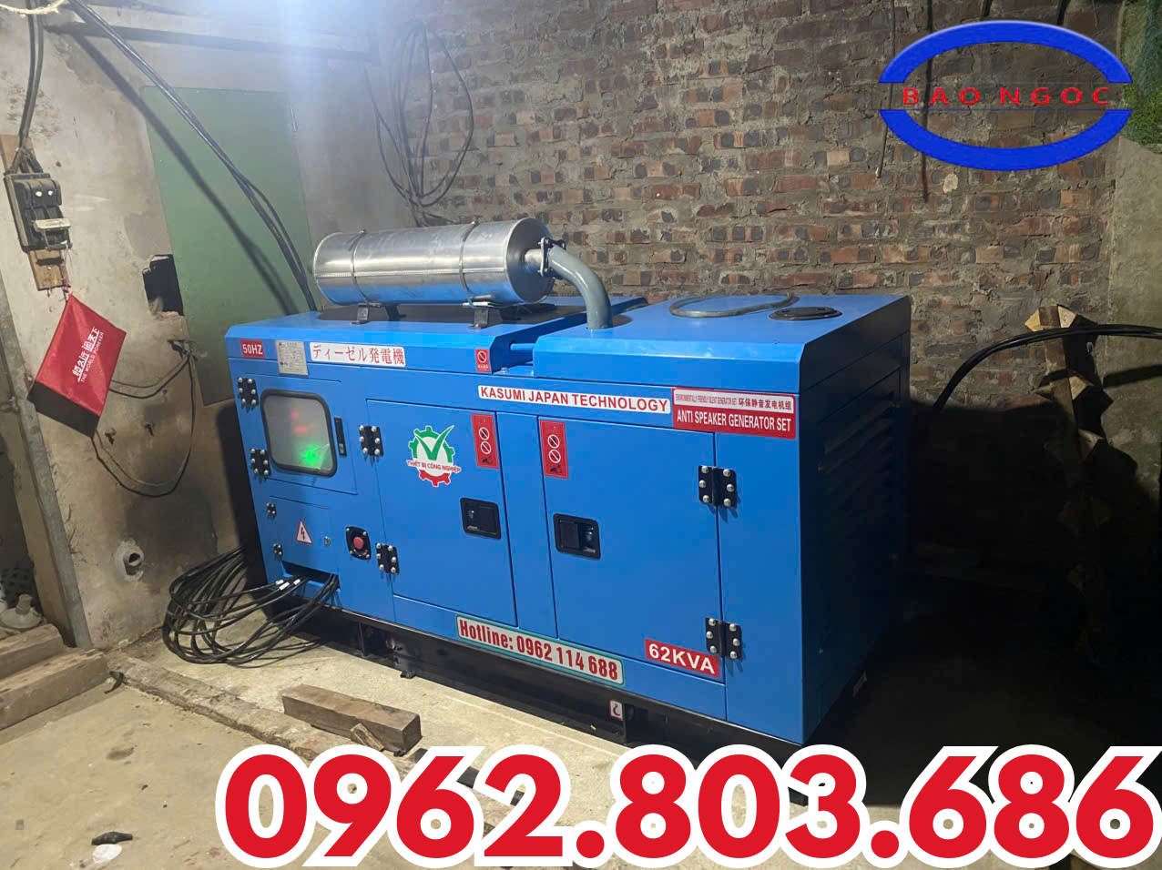 Bảo Ngọc tiến hành hoàn thiện lắp đặt và bàn giao máy phát điện 3 pha 50kW Kasumi trang bị tủ tiêu âm cho khách hàng tại Ninh Bình – giải pháp nguồn điện ổn định, tiết kiệm nhiên liệu, vận hành êm ái ngay cả trong môi trường cần hạn chế tiếng ồn.